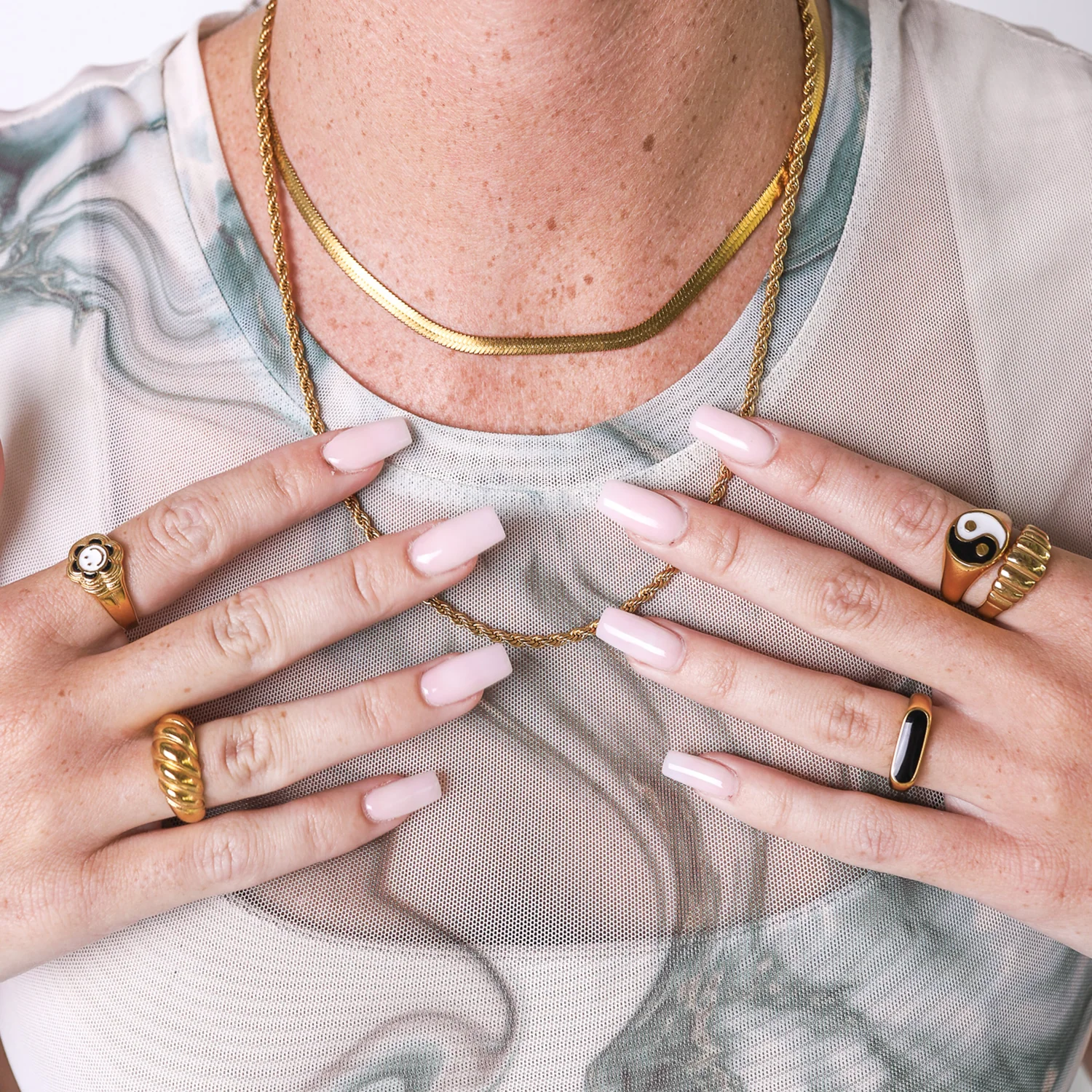 Thé iconic Nola CROISSANT. ring & number one bestseller. This handcrafted goldplated ring is the perfect chunky accessory for this season. The ring is made of stainless steel, so waterproof! The color remains perfect.